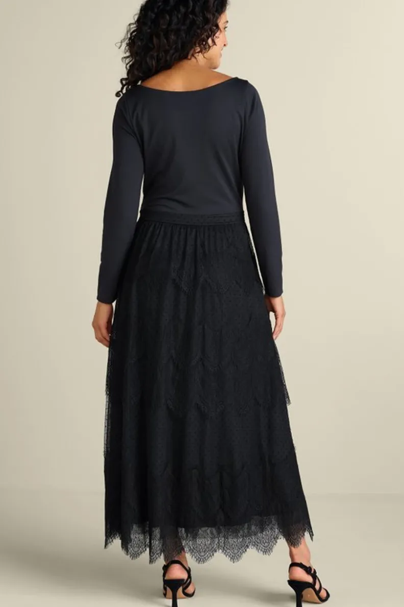 With ethereal, lacy tiers and a soft knit top, this free-spirited maxi dress is giving us Stevie vibes and we are here for it. A banded waist creates a flattering silhouette. Invisible side zipper.