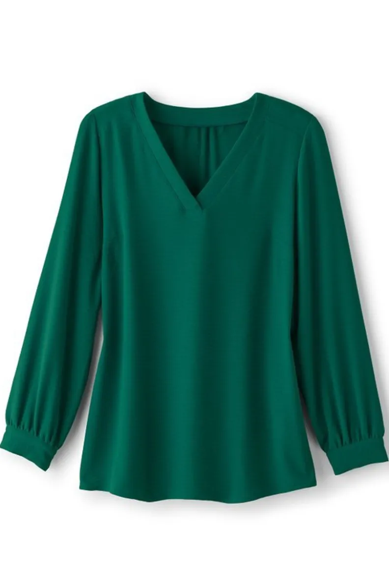 Girls’ brunch or harvest gathering, this tunic flows through them all. Its textured, woven fabric is bound to make waves. While the curved hem and billowy, button-cuffed sleeves effortlessly flatter.