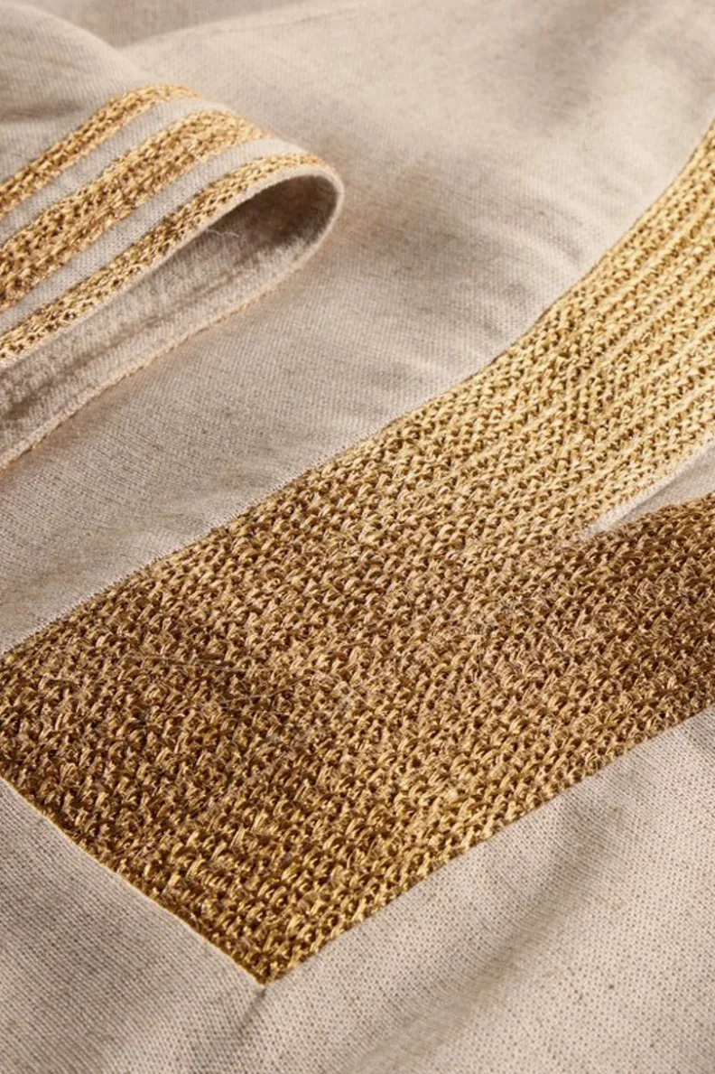If the eternally-chic Queen of the Nile was hosting a summer soire, we’re certain she’d reach for this beautiful caftan. Gorgeous, golden embroidery details the deep V-neck, 3/4 length sleeves, and side-slit hem for a regal look on the easiest of silhouettes. Perfect for poolside cocktails or dinner dates.