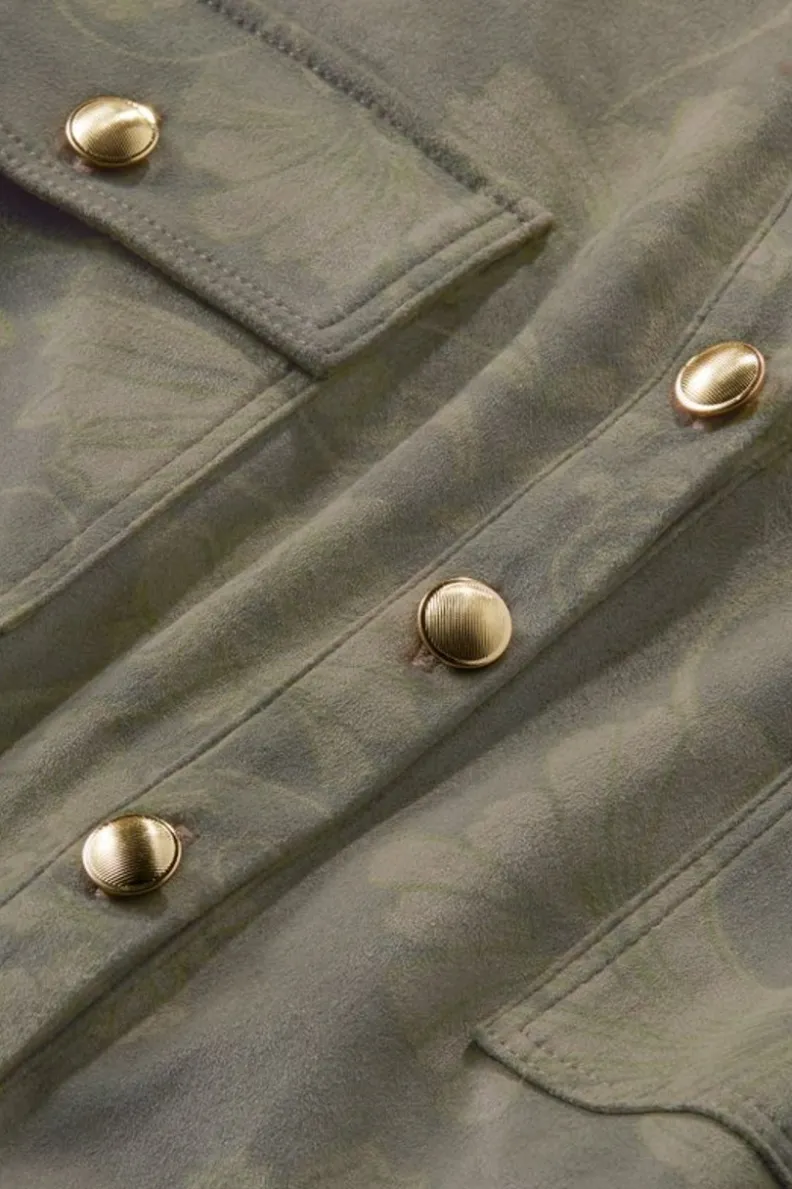 How to make faux suede more luscious? Add an allover print in an on-trend tonal. This buttery soft tunic is not only stylish but versatile too. From the Henley button placket and button chest pockets to the roll tab long sleeves, we made it easy to wear and pair as you please.