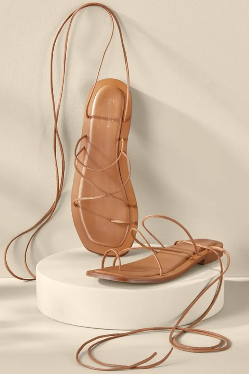 The forever-favorite gladiator sandal adopts a graceful, barely-there appearance with thin bands of golden leather elegantly wrapping your foot and ankle. Leather lining and synthetic sole.
