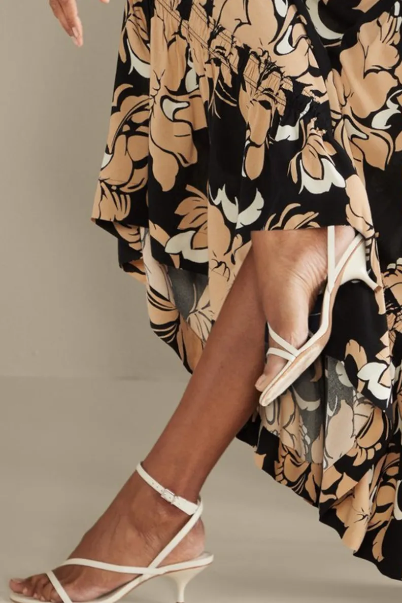 Narrow bands of leather cross and wrap your foot and ankle on this barely-there, strappy kitten heel sandal. With dresses, jumpsuits, or skirts, it’s an alluring style statement. Leather lining and sole.