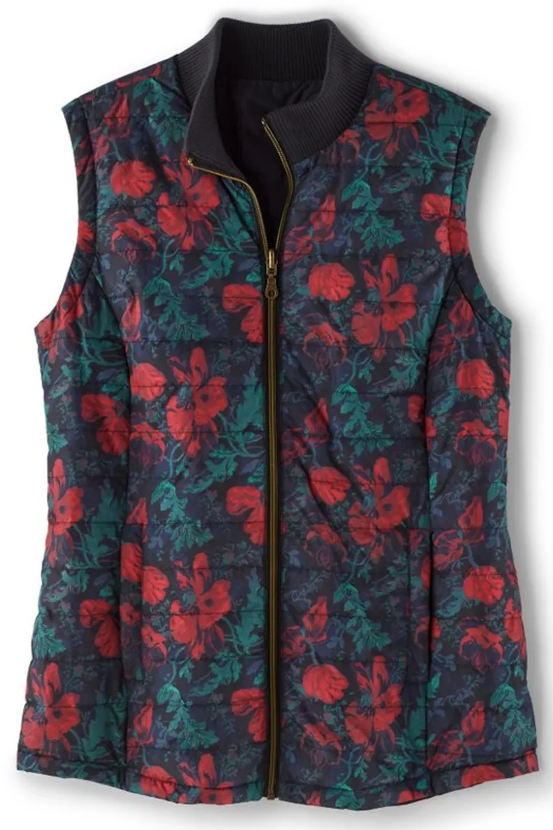 Discount Soft Surroundings Sienna Reversible Puffer Vest WildflowerAntiqueBlack