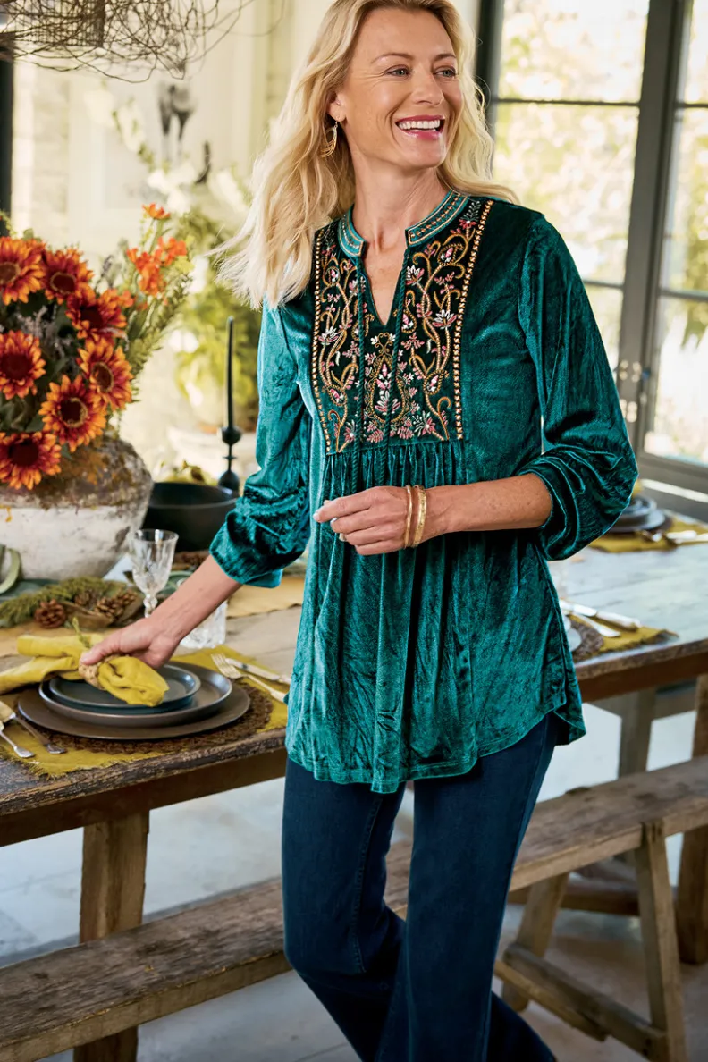 Hot Soft Surroundings Ashanti Embellished Velvet Tunic JuneBug