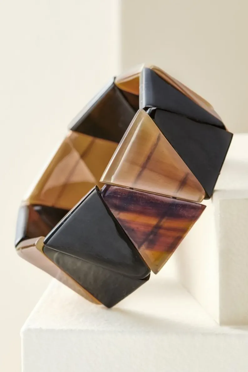 Whoever said neutrals don’t make a statement obviously never saw this bracelet. The two-tone triangular design goes with countless outfits and the stretchy elastic fits almost any wrist. So go ahead, shift into neutral. Epoxy resin.